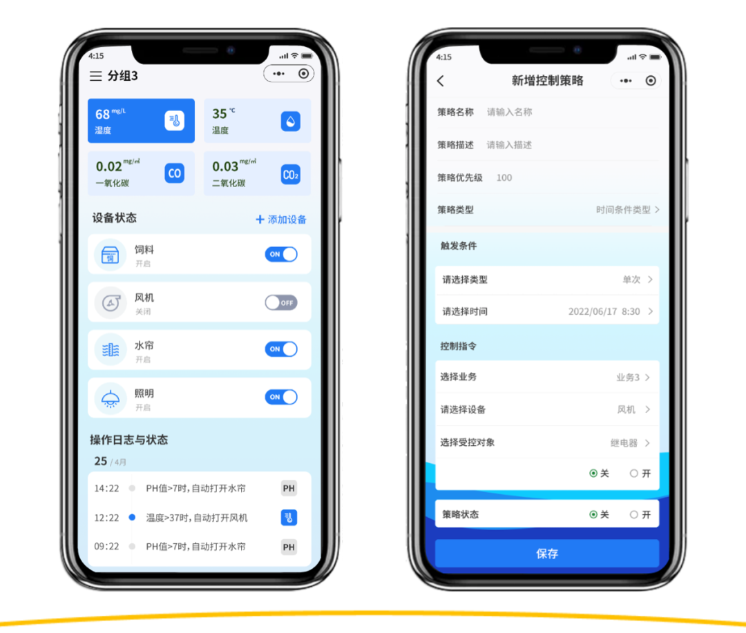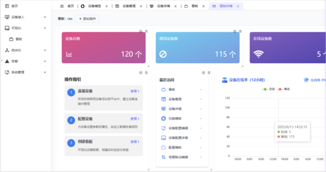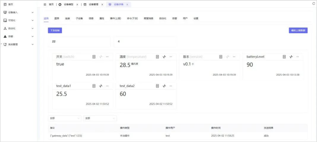 自动化:IFTTT模式,包括时间与设备两种触发模式,自动化告警和自动化控制。