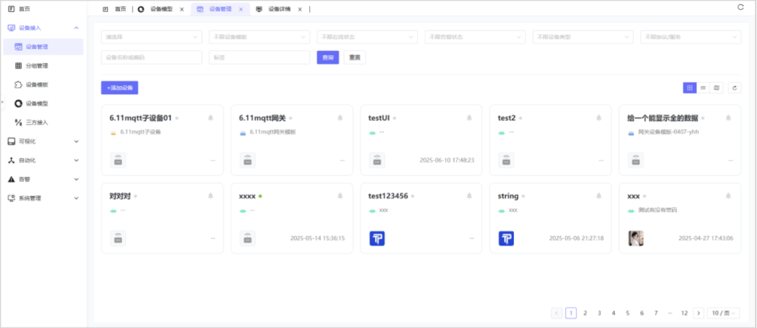 应用管理:设备插件、协议插件,用积木的方式搭建系统
