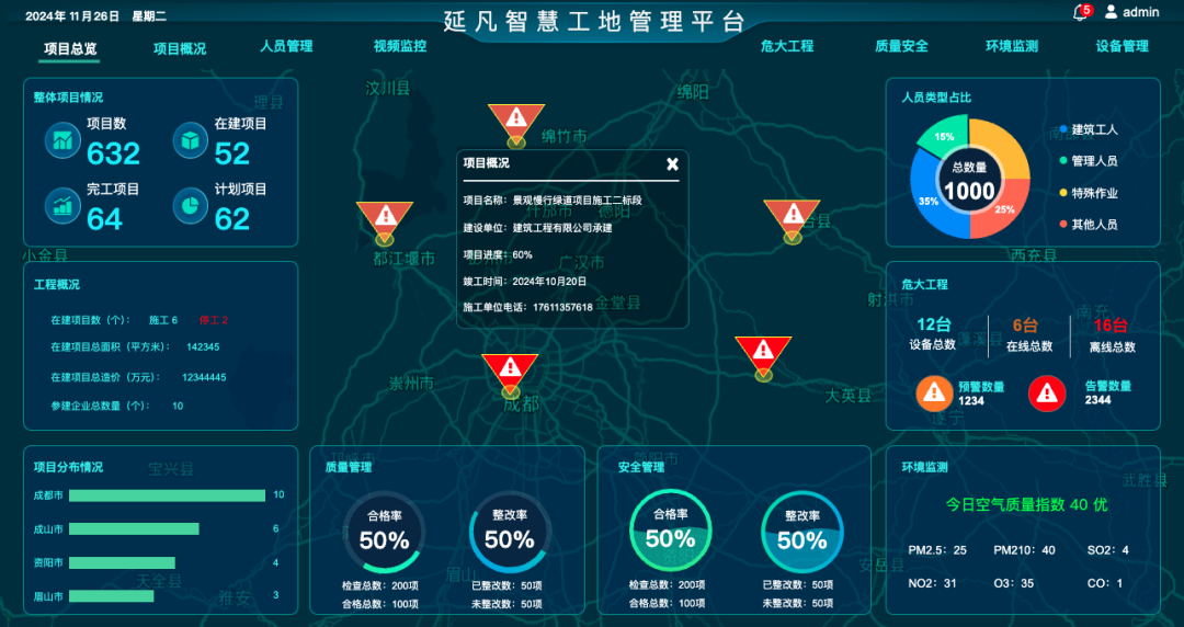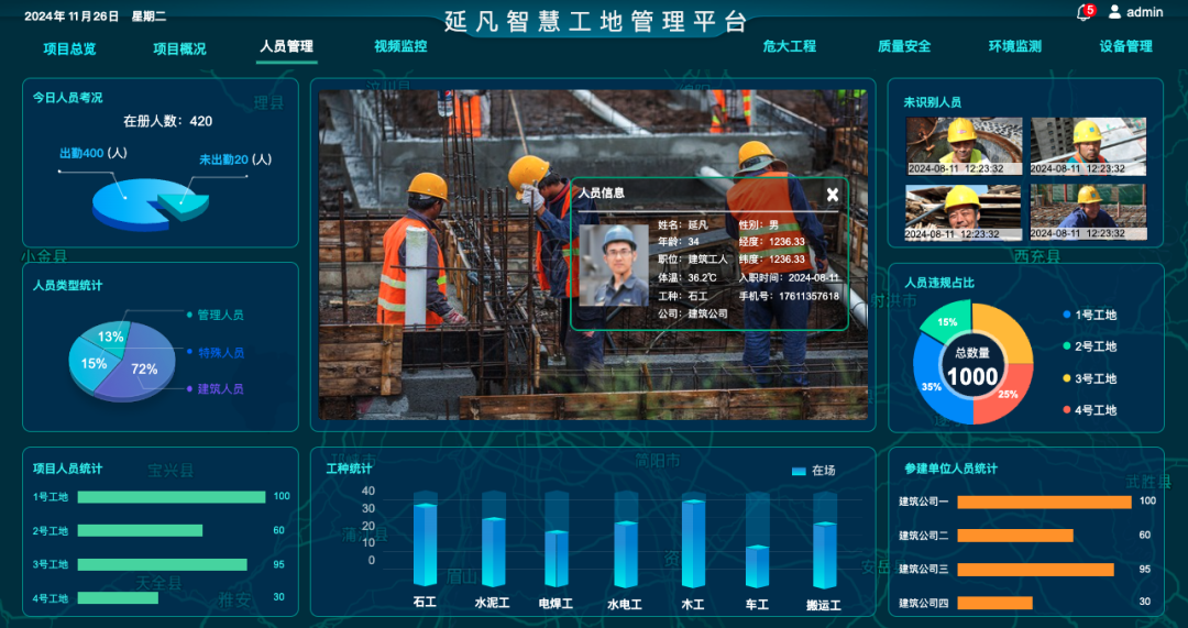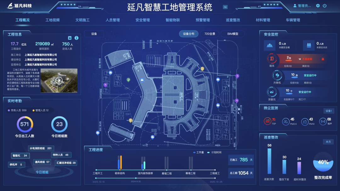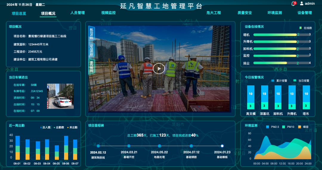 对项目管理者:打造“一屏掌控全场”的可视化管控看板,实时掌握人员出勤、设备状态、施工进度、安全隐患、物料消耗数据,决策不再靠经验、凭感觉;