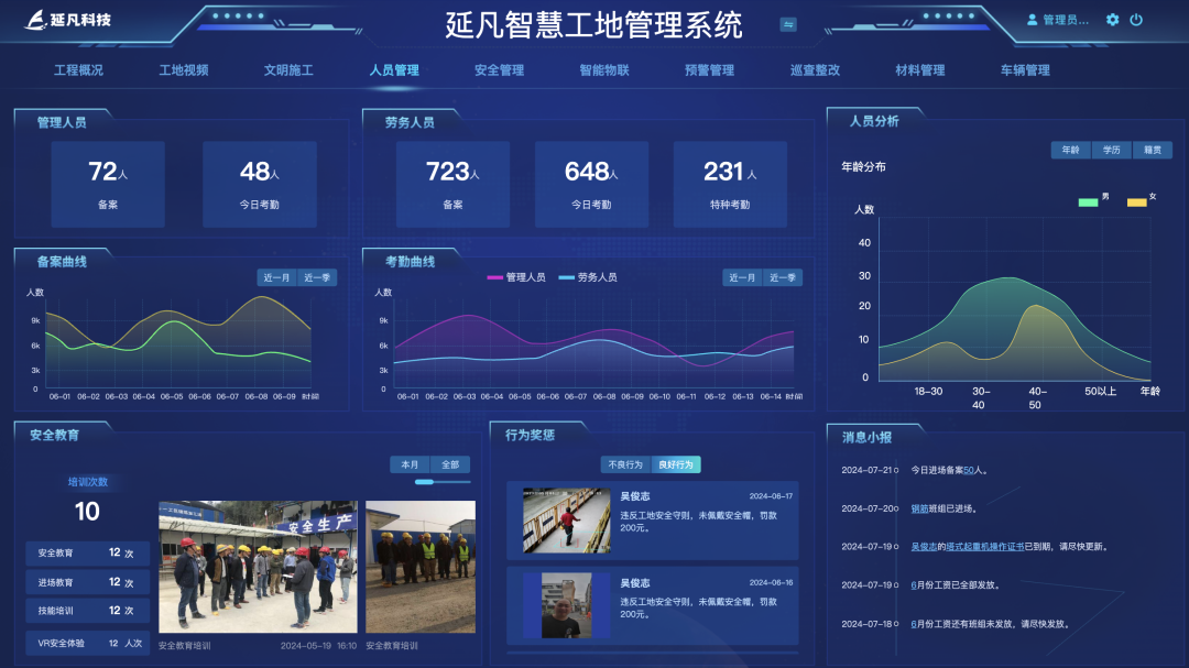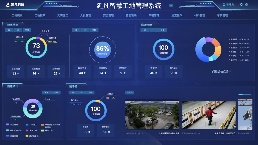 中小建筑企业的施工管理中,“安全隐患多、人员管控难、进度推进慢、物料浪费大、合规风险高”是长期绕不开的经营痛点。延凡科技AI智慧工地系统精准锚定中小建筑企业的核心需求,以“低成本、全场景、易上手”为核心亮点,整合物联网、AI视觉检测、轻量化工地管控等前沿技术。