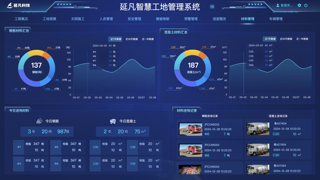 智能物料验收:扫码核重+AI视觉识别物料规格(钢筋、水泥、砂石等),送货单与实际物料自动比对,避免缺斤少两、规格不符等问题;