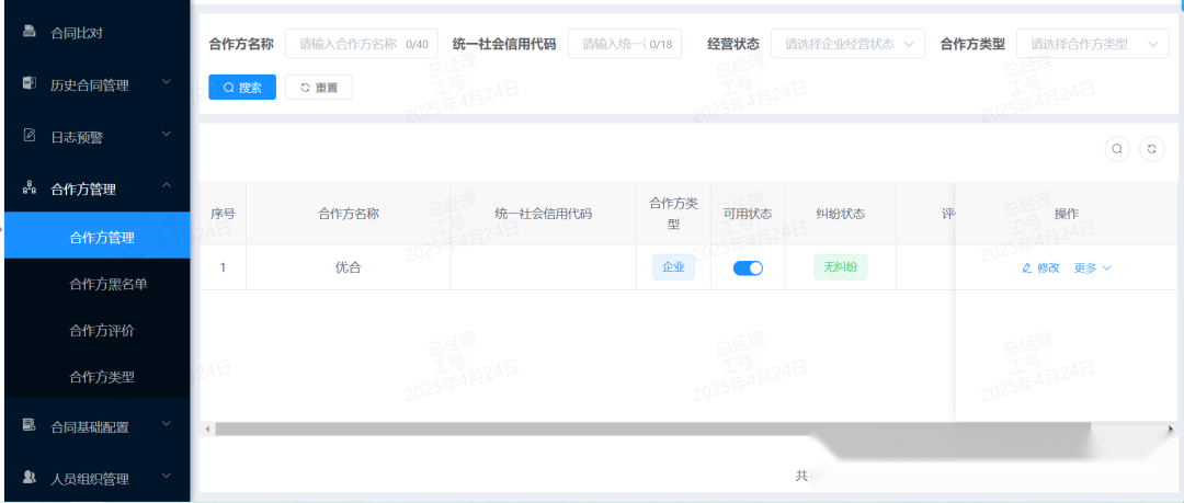 合同管理系统是基于 JAVA 开发的合同全流程数字化解决方案,致力于实现合同全生命周期的高效管理。系统覆盖合同起草、审批、签订、履行、监控、评估、完结及查询统计等全过程,可直观查看和跟踪合同状态、进度及相关信息。通过自动化流程提升效率,减少人工操作及纸质文件管理成本;利用提醒功能避免重要时间点疏漏,并通过规范合同管理降低合规风险。目前,该系统已成功服务汽车制造、物流、医院等多个行业的客户,能有效减轻合同业务量大、涉及多部门协调的企业法务负担,辅助企业管理层决策,是企业合同管理的得力助手。