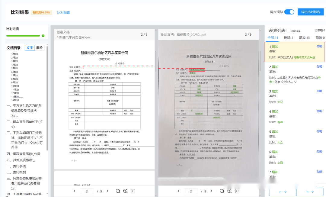 合同协同阶段:快速定位条款差异(修订内容/金额/日期),确保业务人员与对方签署公司达成共识,避免反复邮件确认。