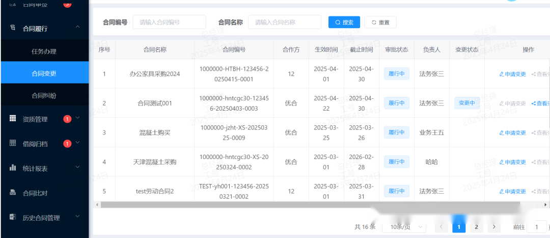 合同变更:支持合同变更管理,包括合同补充和合同解除流程。