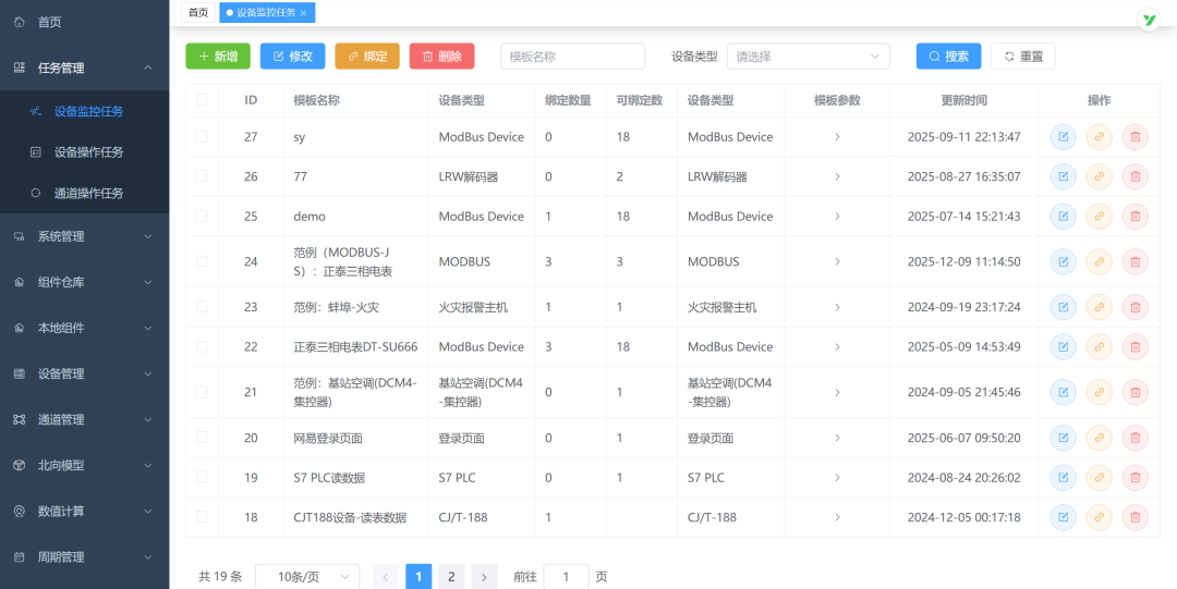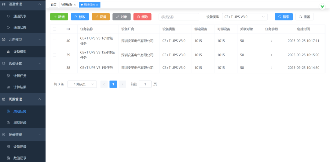 设备监控任务、设备操作任务、通道操作任务