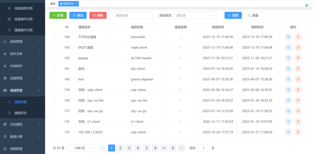 通道列表、通道状态