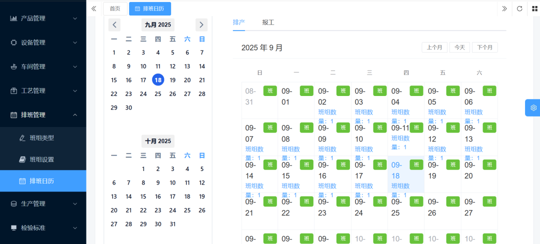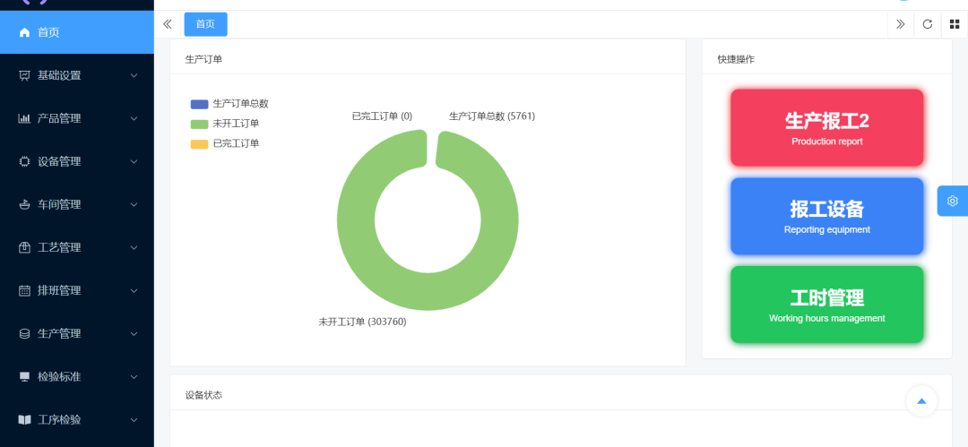 生产订单、生产排产、排班计划、生产报工、生产任务、报工设备、工时管理、工时类型、临时工时、同步订单