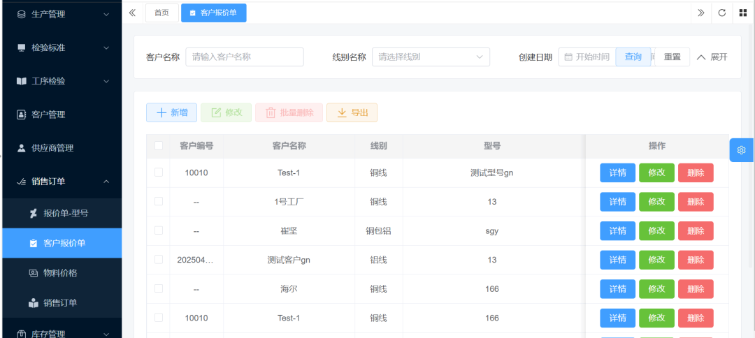 检验方式、检测器具、检测项目分类、检测项设置、工序检验标准
