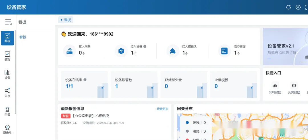 | 看板展示网关、设备数量及在线率,提供统计报表、日志和网关地图分布,实时监控资产状态,提升管理效率。 |
