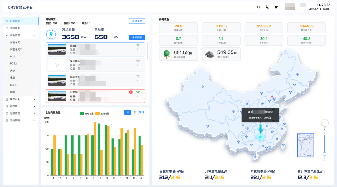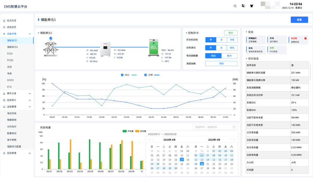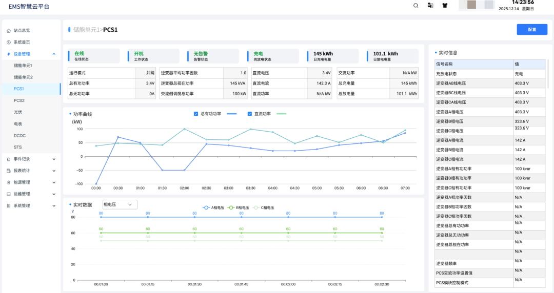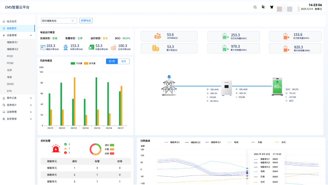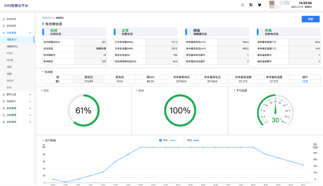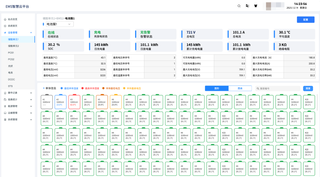 故障检测与安全保护:EMS系统能够及时检测并报警能源设备中的故障情况,如电池过放、过充、温度异常等,以保障能源设备的安全运行。同时,它还能与配网系统进行联动,实现对能源设施的远程控制和保护。