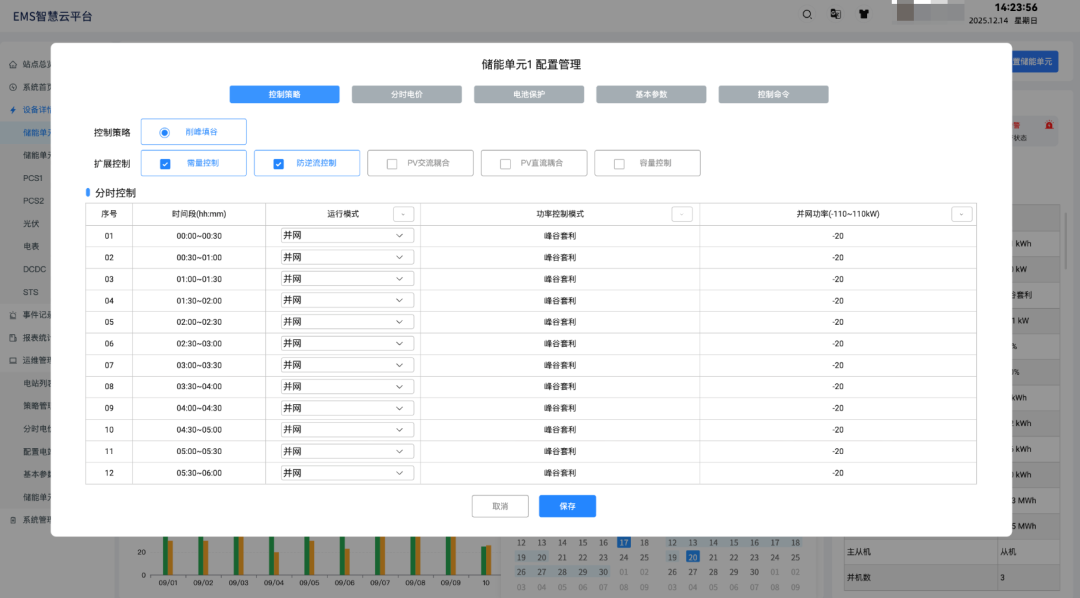能源调度与控制:EMS系统可以根据实时的能源需求和系统运行情况,智能地进行能源调度和控制。例如,根据需求预测、电价情况、电网负荷等因素,合理安排储能设施的充放电操作,以实现能源的高效利用和节约。