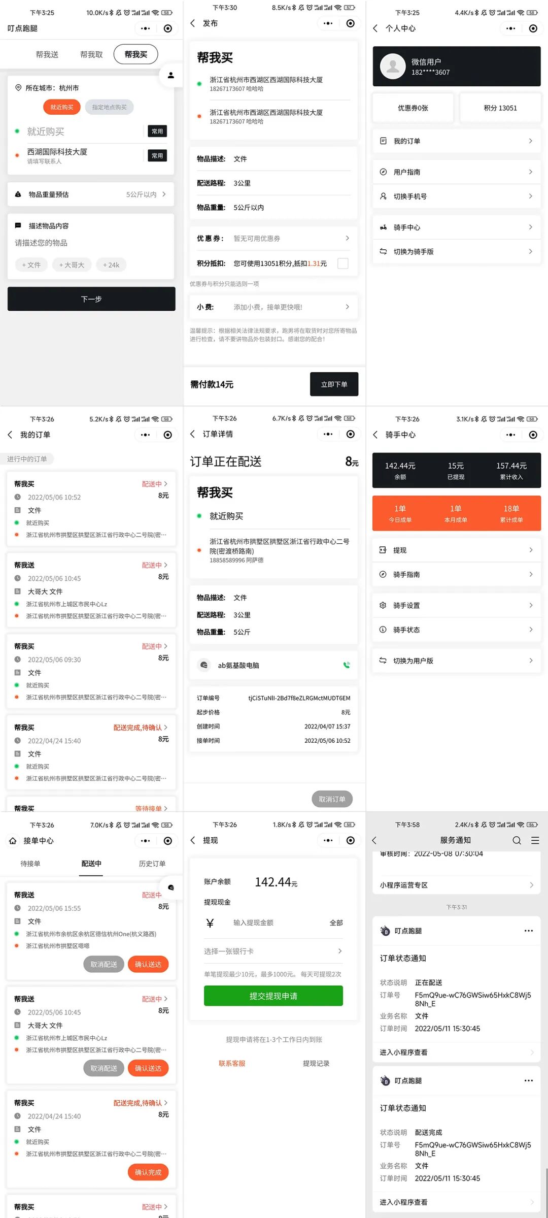 功能全面无短板:从用户下单、骑手接单到后台结算,覆盖跑腿业务全流程。