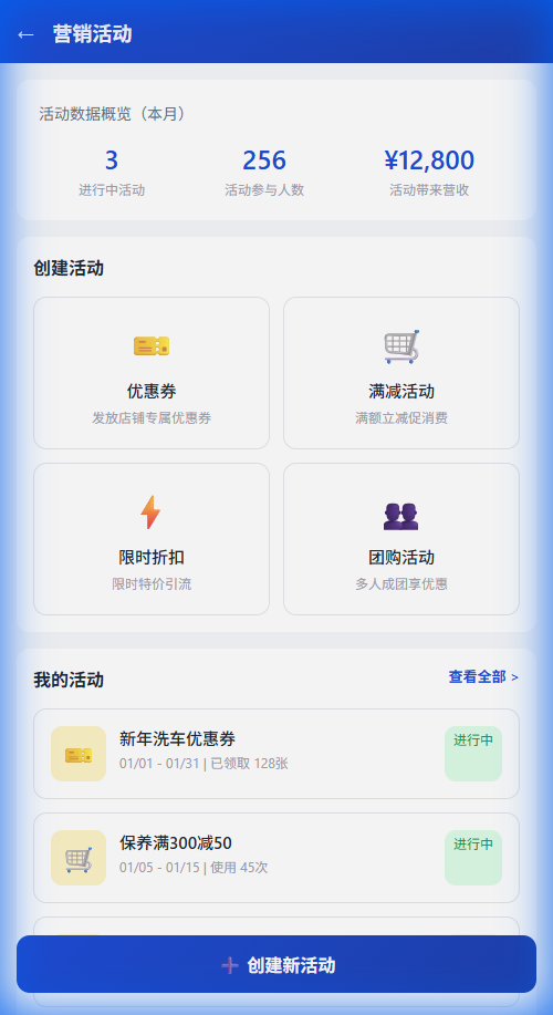 商家营销工具,支持创建优惠券、设置满减活动、限时折扣等促销方式。