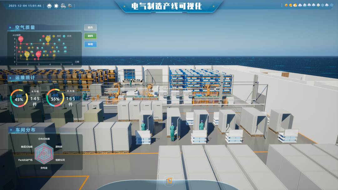 驱动孪生体:用后端实时数据(如设备状态、传感器读数)驱动3D模型的动作、颜色变化或动画