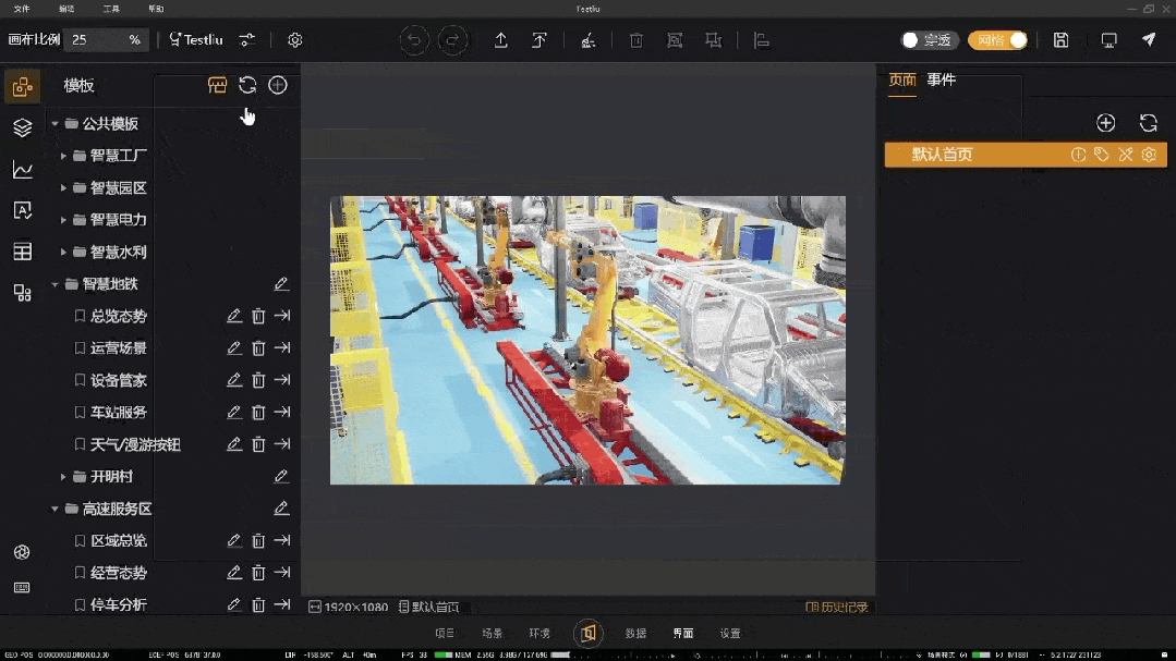 同时,内置上百个通用模板覆盖智能制造、能源电力、基础设施等高需求场景。可以在模板的基础上进行场景搭建和修改,快速完成标准场景搭建。