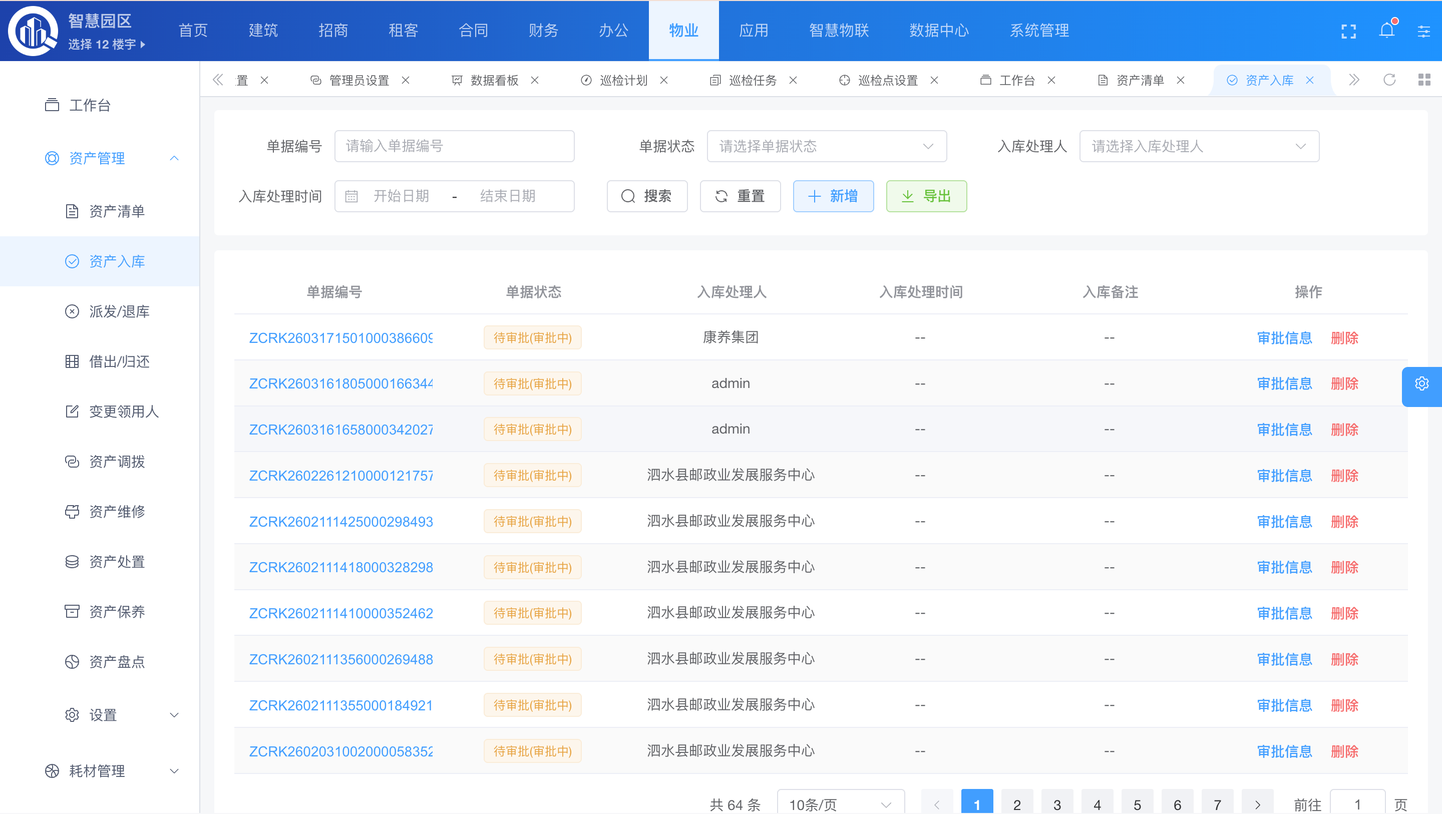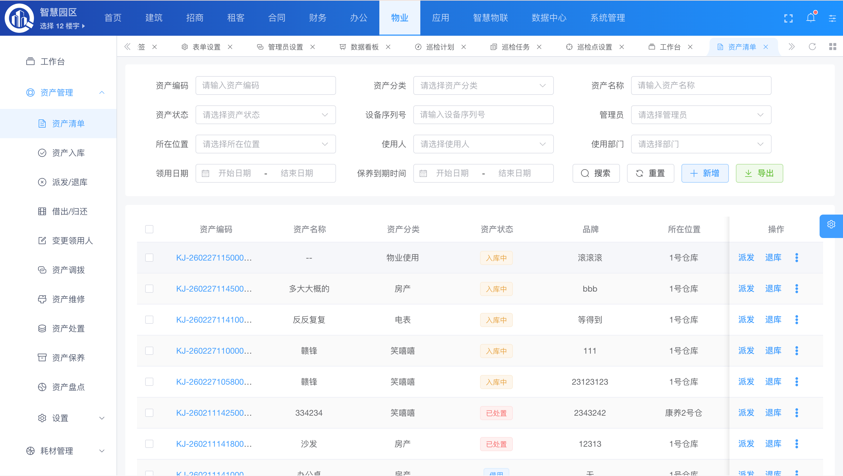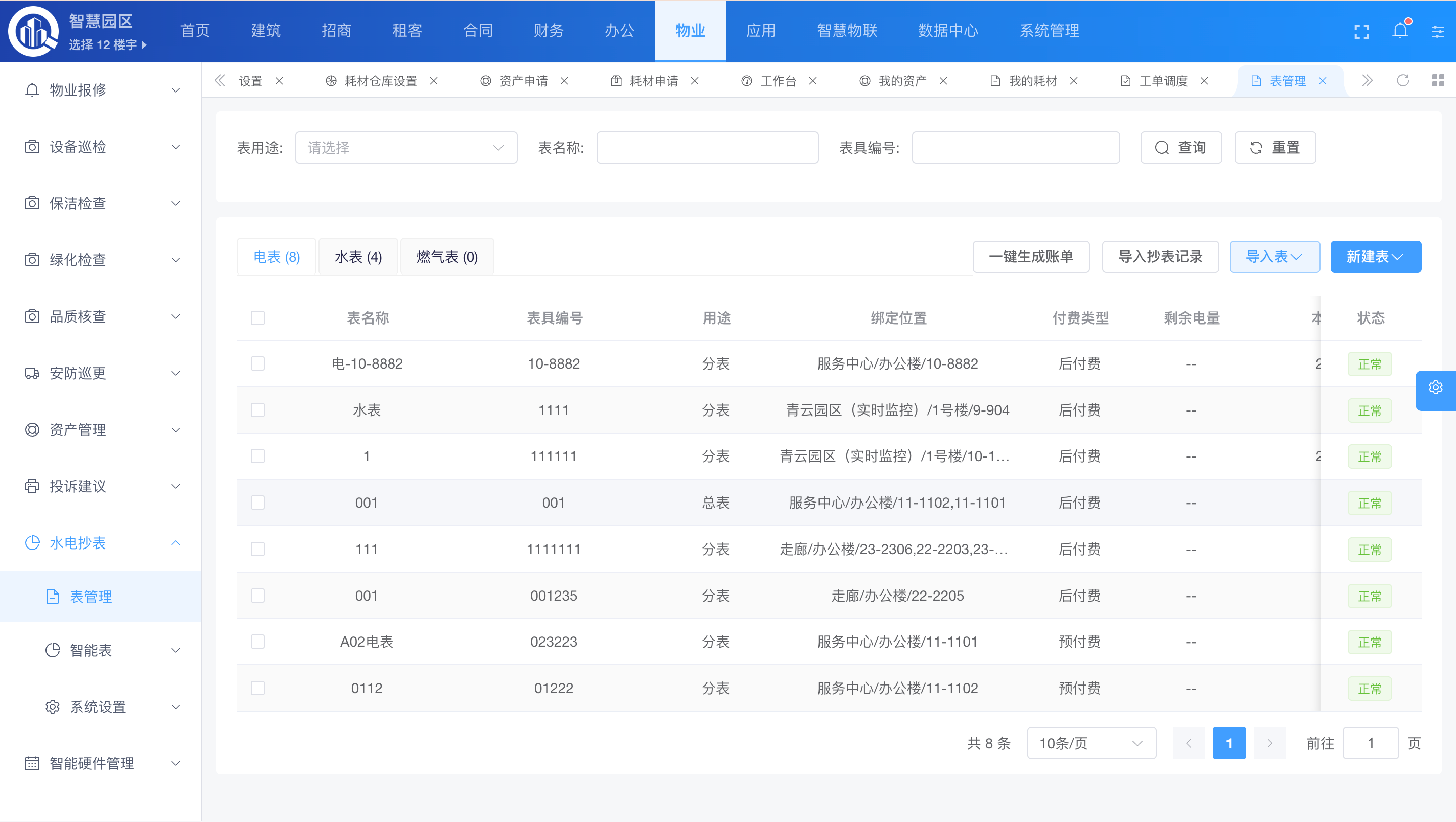 - 报修、巡更、资产运维、物料管理: