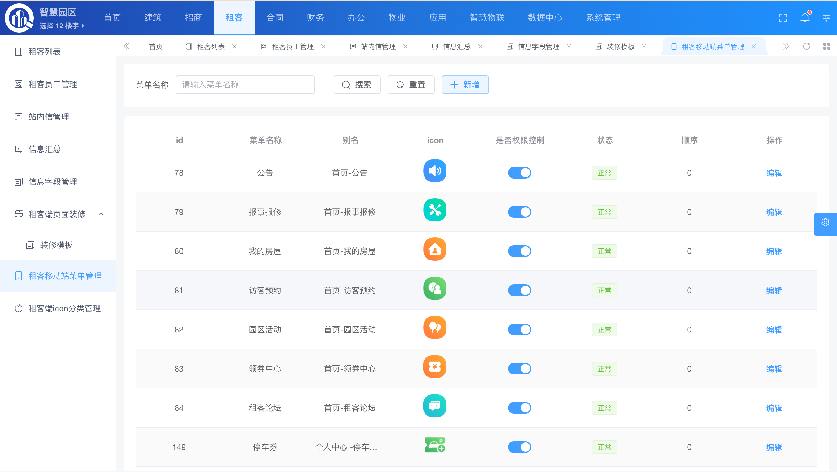 - 8大业务子系统:招商引资、财务管理、物业服务、资产管理、企业服务、智慧物联、节能减排、政务服务。