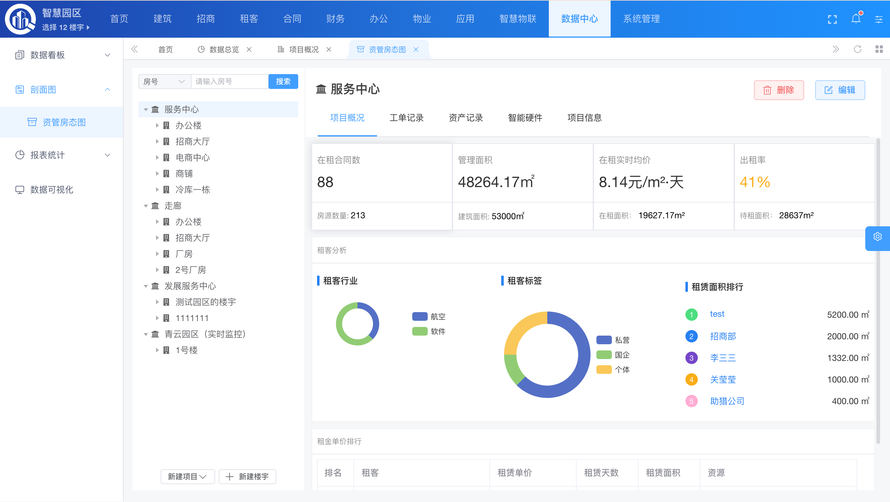 - 房态地图:楼宇、房间、工位、厂房租售状态的动态视觉呈现。