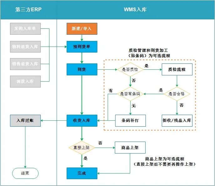 质检管理、按单扫描入库、装箱收货入库、按拍扫描入库、按单码盘扫描、