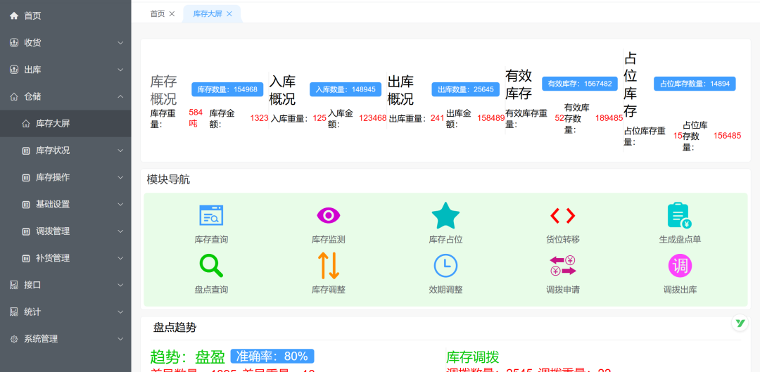 货物吞吐量等关键指标,助力管理人员全局把控入库环节效率与状态。