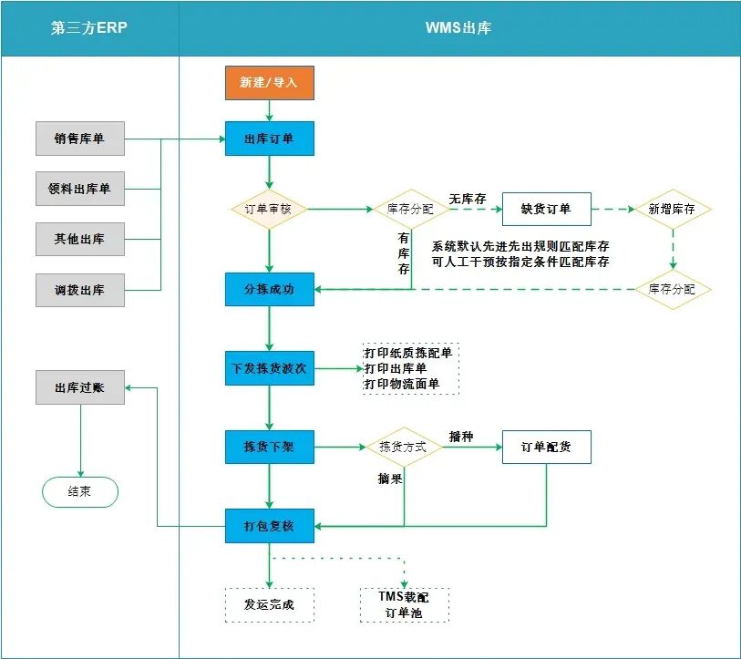 出库单常规配货、出库单批量配货、出库单打包校验、无单打包校验、