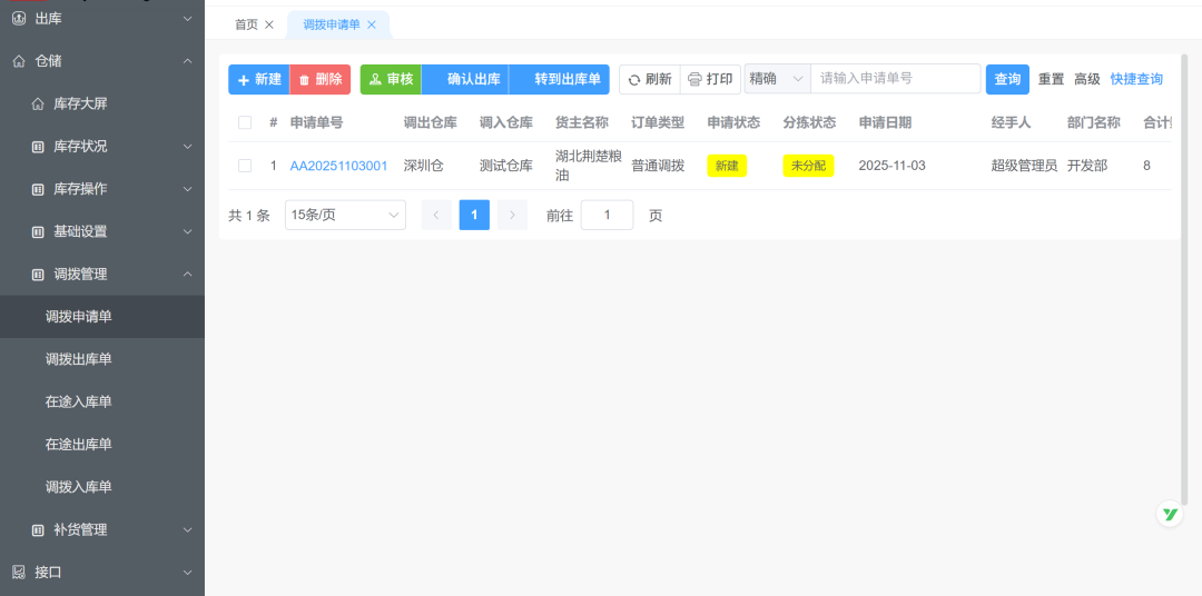 调拨申请单、调拨出库单、在途入库单、在途出库单、调拨入库单